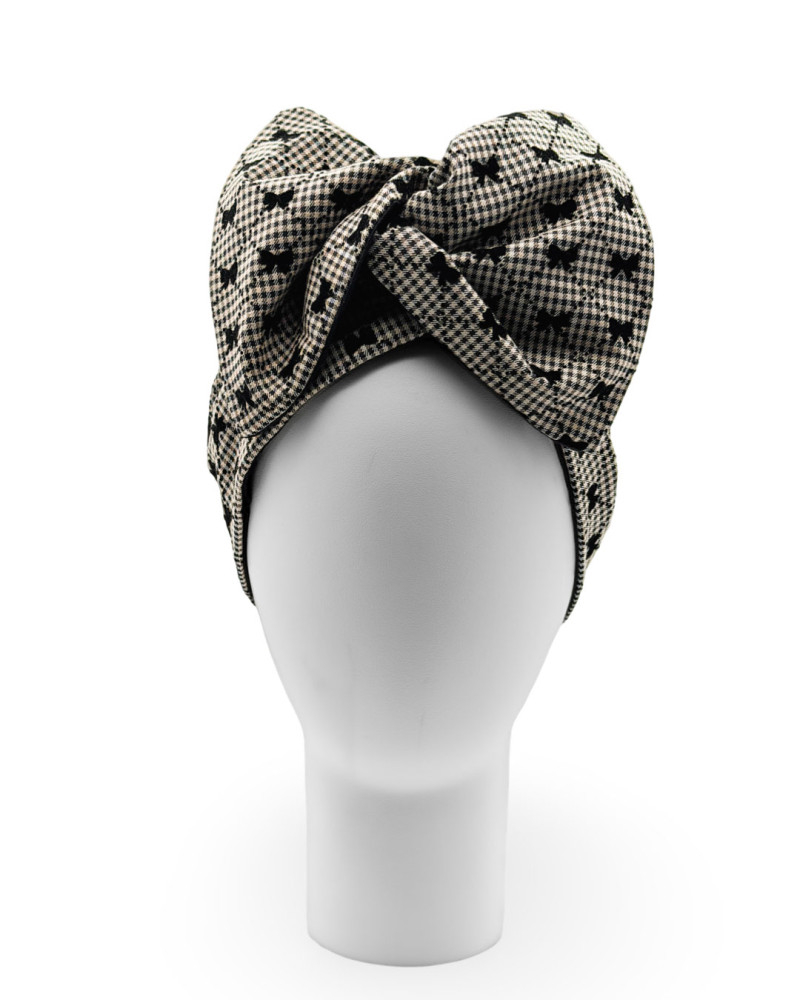 Beautiful beige, black and grey fabric with small black velvet bows.