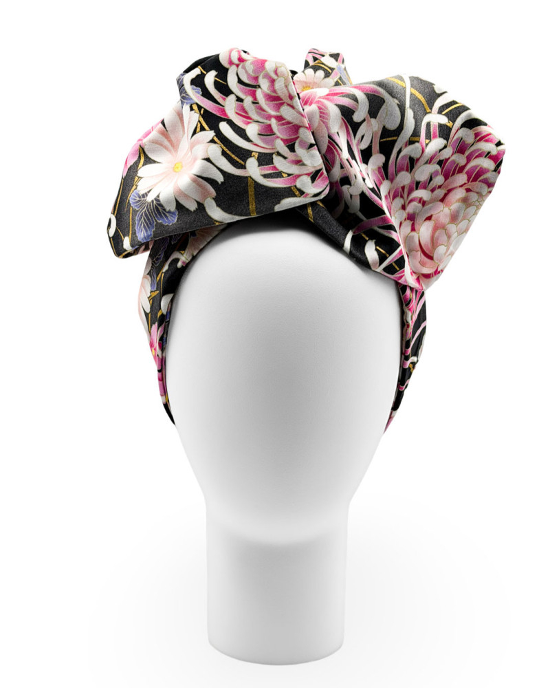 Japanese cotton satin fabric decorated with large colorful chrysanthemums