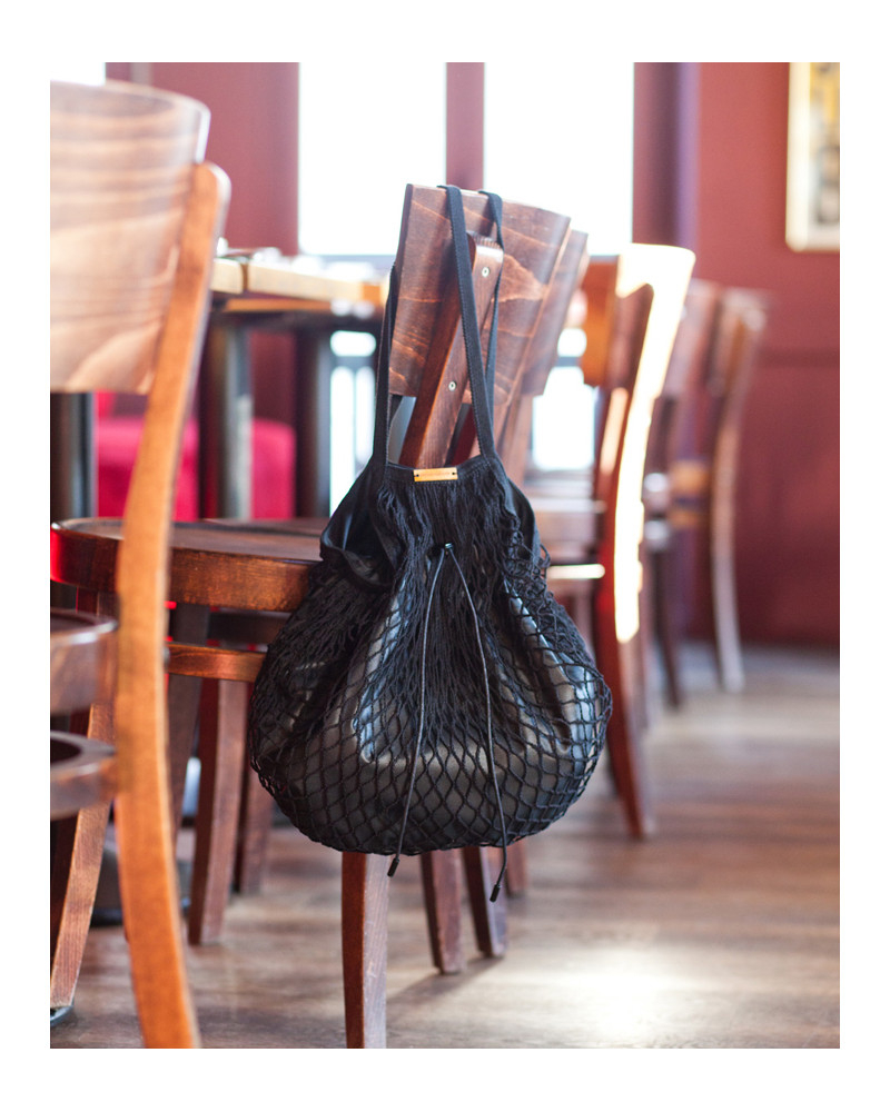 Le sac peut se fermer comme une besace. Finition fermeture en métal noir.